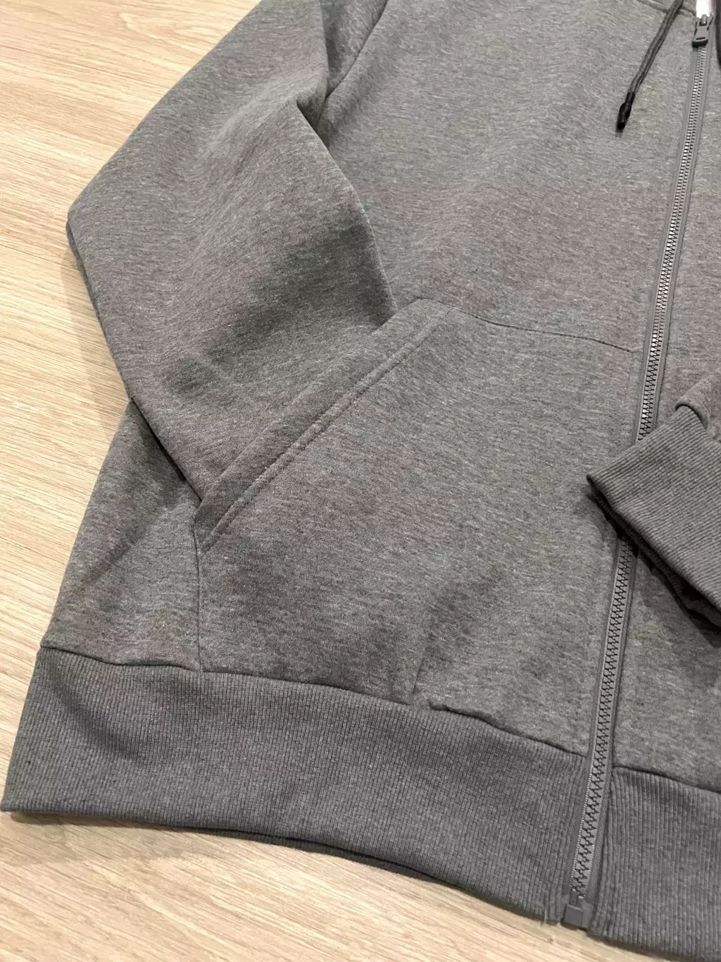 blusa moletom com zíper, touca e bolsos.
